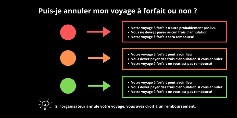 - Le code couleur de ma destination est rouge, orange ou vert et je souhaite annuler mon vol / ma réservation d’hôtel / de voiture de location … Est-ce possible sans frais ?