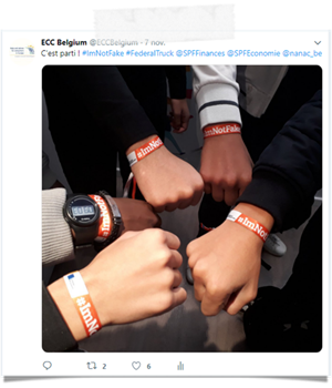 Nanac et le Centre Européen des Consommateurs (CEC) Belgique ont effectué en novembre et décembre, une tournée dans les écoles belges à bord du Federal Truk sous le slogan #ImNotFake. Cette campagne de sensibilisation vise à montrer aux jeunes pourquoi l’achat de contrefaçons est une mauvaise idée.